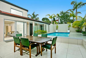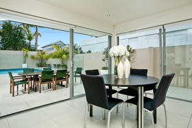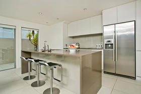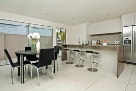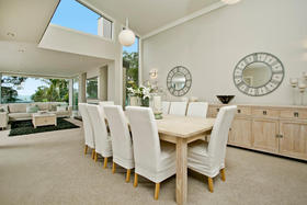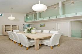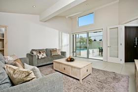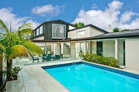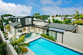 Beachside Family Sanctuary This superbly designed Allan Shanahan home boasts a most sought after address,only metres from gorgeous Takapuna Beach, the position enhancing the homes resort feel with expansive seaviews to Rangitoto. The perfect style of this 350m2, four/five double bedroom residence with versatile and flexible living options, is complemented by every modern feature: custom made kitchen with European appliances, stylish bathrooms, contemporary lighting and so much more. The outdoor living spaces extend to secure boundary walls that frame a stunning sundrenched pool area. An intimate spacious lounge with gas fireplace and formal dining, kitchen/casual dining and poolside family room all benefit from this superb aspect where relaxation is the keynote. The upper level contains a study and master suite with its own balcony and ocean vista. Downstairs are three more bedrooms (one ensuited), and a lounge, ideal for the teenage family.There is easy internal access to the remote controlled double garage. This versatile, thoroughly modern home will provide effortless living for the fortunate purchasers.