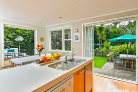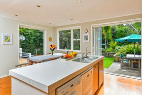Completely private, behind mature trees and garden, this immaculate 1960's weatherboard home is in a class of its own! Situated on a stunning 708 sqm freehold site in the heart of the Westlake Schools Zone beautifully renovated and extended over the years, it now offers a choice of lifestyle for the new owners. The impressive, modern kitchen and living room flows to the North facing, outdoor entertainment area - a year round suntrap - while decks on both sides of the house provide access to the idyllic, delightfully private, tree clad garden. With 4 good sized bedrooms, including a huge master with en-suite and walk in wardrobe, and two spacious living areas, office area its a perfect family home. There's scope to create an independent living space for teens or ageing parents with a planning proposal available to allow a future source of income. Internal access garaging and off street parking for up to 3 cars and a boat, makes this the ultimate Kiwi family dream home, After 14 years, the current owners needs have changed and they are ready and motivated to let a new family enjoy this special place. In a select suburb, close to beaches, shops and all the very best North Shore has to offer, this is an opportunity not to be missed.