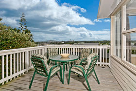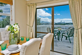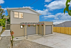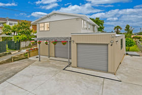 The upper floor offers a formal lounge with beautiful panoramic view to Rangitoto Island, expansive designer gourmet kitchen, open plan dining room with easy flow to large deck, 3 spacious bedrooms, 1 bathroom and plenty of storage space.
