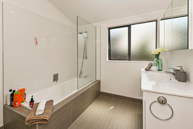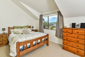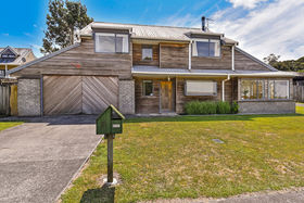 Are you looking for a large family home, a flat section and a larger than normal double garage? Then you must put this home on your shopping list! In it you'll find four double bedrooms and two bathrooms, with the supersized bathroom upstairs recently having been renovated, and two rooms enjoying eye-catching valley views and Rangitoto. The ground level has a laundry room, bathroom, solid bright kitchen, dining room, very large lounge flowing to a paved backyard with a super-sunny BBQ area and easy-care garden.