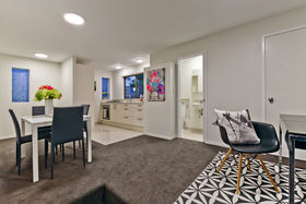 Downstairs is a cleverly laid out space comprising of a full kitchen, bathroom, laundry and dining area, a combined large bedroom & living area that can provide various options to suit the tenant or owner.
