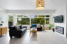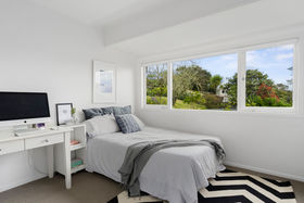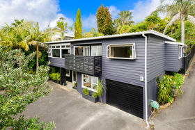 Situated on an elevated site in a peaceful cul-de-sac this contemporary handsome home has much to offer. On two levels, the entry foyer leads to a studio which could be useful as a home office or a second lounge. A double bedroom, a bathroom, laundry and single garage with ample storage complete this level.