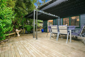 - A well-sized timber deck with stylish, yet functional Mimosa Louvre roof panels - creating the perfect outdoor space for relaxing and entertaining.