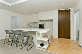 SET DATE OF SALE - 1 JULY 2019 (if not sold prior) B/302 is a gorgeous two bedroom, two bathroom, top floor apartment now completed at 8 Lake Pupuke Drive, 109 sqm in size, including an 11 sqm balcony, and is a north facing suntrap. The home features a media room, master bedroom complete with ensuite and walk in wardrobe, open-plan indoor and outdoor living and separate laundry. The kitchen is stylish and contemporary, perfect for entertaining and features timber flooring, quality appliances, engineered-stone bench tops and custom soft-close lacquer joinery. Dual tone tiling, mirror cabinetry and quality tapware and fittings plus underfloor heating create modern and durable bathrooms. Carpark and storage locker included. Generous 2.7 metre stud heights in living areas and superior acoustic and thermal performance ratings, complete the exceptional living experience. An easy walk to Takapuna´s shops, beach, cafés and restaurants, and Lake Pupuke. Pet friendly! Body corporate $5329.00.