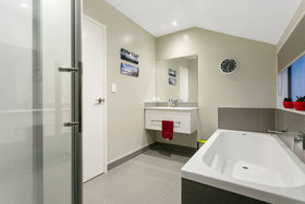 Additional features include a spacious and well-appointed kitchen with an engineered stone top, modern decor throughout, a large double car garage with internal entry, a ground floor guest powder room, heat pump, burglar alarm and enough parking to fit two visitor's cars. With the ground floor featuring open plan living with indoor/outdoor flow through large triple sliders out to an easy-care private sunbathed kwila hardwood deck, this home is perfect for entertaining family and friends. The site is also fully fenced making it ideal for small pets.