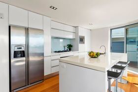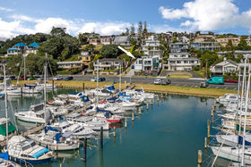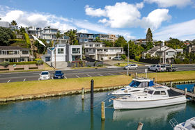 Set according to an architect's specification on 350sqm more or less of freehold land across the road from Milford Marina, this is close to waterfront. Double glazing and tinted glass, rendered solid concrete block construction with CCC issued in 2010, on an easy-care site with a masterful use of space complete with double garaging, internal access, heat pumps and a gas fire.