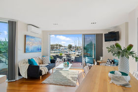 With just a few blades of grass to mow and magnificent picture views of the marina, here is a rare opportunity to turn your attention to boats and live a super modern lifestyle. Two living areas, four double bedrooms, two full bathrooms, and the master bedroom and ensuite bathroom are sheer luxury.