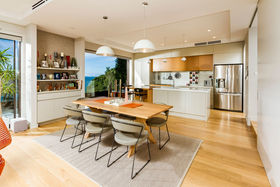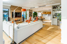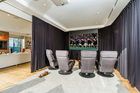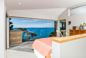 Ground floor entertaining offers lovely solid American Oak floors throughout which blend nicely with the cedar on the exterior. All windows are double glazed and there is ducted air conditioning, underfloor heating and a gas fireplace to take care of constant temperature changes. A large MBD designer kitchen with scullery flows to a spacious dining and lounge area contained within one space for easy entertaining. This area benefits from expansive wide Gulf Views and intimate views of Murrays Bay Wharf. Separate to this is a functional media room with a drop down projector screen. This space has an ensuite and a pull out "New York" style bed to make it into a great fifth bedroom or guest suite. Upstairs there is an expansive master suite with breath-taking views which flows out to a spacious deck with its own spa. A lavish ensuite and walk-in wardrobe make this a gorgeous retreat. You have space if required to house a lounge setting but this is currently being used as an office.