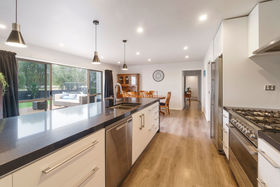 Providing the large level lawn a true Kumeu lifestyle demands, but set well off the street in an established enclave of homes, this extraordinary residence offers a blessedly ordinary life. Filled with easy strolls to school, backyard cricket, and simple summer BBQ's on the expansive sunkissed back deck, this is the home in which to bring up a brood of appreciative Kiwi-kids while you tinker in the extensive garaging amid all your projects.