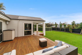 With the bedrooms at each end pleasingly separated to accommodate kids of all ages and stages, an established school virtually at the end of the drive, and the fabulous Huapai Domain on the adjacent street, plus a main public transport route just a short stroll to the bus stop away, this is a home that will resonate with the whole family.