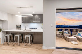 The kitchen is absolutely stunning and there is no shortage of cupboard space here with floor to ceiling cabinetry. A double sink, double oven, and huge breakfast bar/island bench will make entertaining friends and family a breeze.
