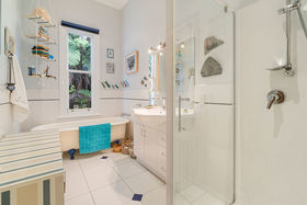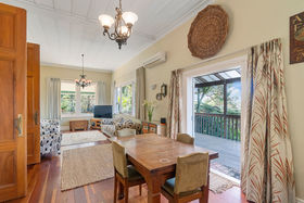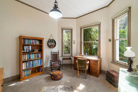 Open-plan, the kitchen, dining, and lounge are generous, and blessed with a lovely leafy outlook. Offering an en suite and a walk in wardrobe, features seldom found in period homes, the master bedroom feels like a cosseted little world of its own and flows beautifully to a section of the wrap-around deck from which it is impossible to avoid perusing the bountiful raised garden beds. Each room of this generously proportioned residence feels deliciously connected to outdoors.