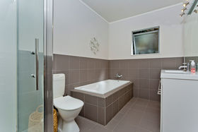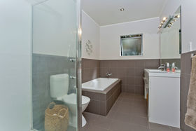 Downstairs, you'll find a second living space, plus four double bedrooms and the modern family bathroom. The spacious master bedroom offers an ensuite, walk-in-wardrobe and access out onto a small sunny courtyard. With the living space and two other bedrooms also enjoying patio access, you'll find fresh air and natural sun warmth is in ample supply! The laundry and a generous storage area add to the convenience on offer downstairs. There's also a small, sloping, easy-care garden out the back.