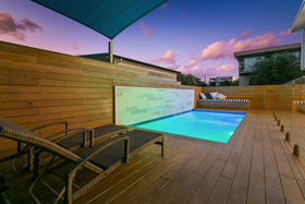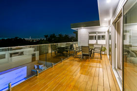 On the ground floor, there is a fantastic pool complex with a concrete, saltwater and heated pool, with fountain and lights plus generous decks surrounding it for extended lounging enjoyment this coming summer. A good strip of land between the pool area and the homes below beckons for someone to make the most of, with mature planting creating even further privacy and a tropical ambience if you so choose.