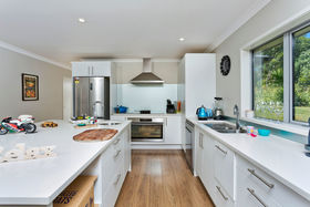 - A crisp and clean modern kitchen, complete with an extra-large breakfast bar/bench space.