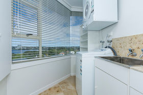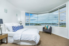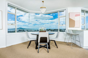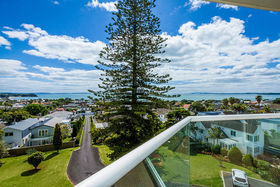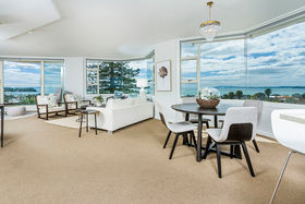 When constructed, the architect chose level four (the subject) to occupy for himself given the powerful views it gets whilst maintaining connection and perspective with the ground. This is an exceptionally rare opportunity to secure a generous 170sqm single level, whole floor property with breath-taking views of Auckland Harbour, Lake Pupuke, Auckland city and the Waitakare ranges -simply superb! The building is a 1960s masterpiece with a good history, and it has been updated considerably in the last few years with new joinery, decking, lifts and the subject having updated interiors. The property offers three bedrooms with the master having an ensuite and walk in robe. An expansive living area, well-appointed and spacious kitchen, double garaging, spacious storage unit, large common pool and vege gardens as well as gated access to Lake Pupuke. A modest $850 per month outgoings, solid concrete construction with new aluminium joinery makes this ONE OF THE SHORES MOST POPULAR APARTMENT BLOCKS.