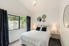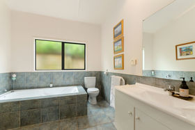 As well as a walk-in wardrobe, the oversize main bedroom offers a spacious en suite, and the joy of a ranchslider that opens to the backdrop of an exquisitely well established garden.