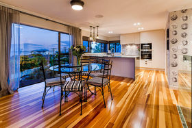 A unique opportunity has arisen to secure one of Castor Bay's best homes. This enviable package offers panoramic sea views from its prime elevated position. The low maintenance characteristics, all day sun and excellent separation are perfect for family living or an executive couple. The property was completely rebuilt in 2016 with new cladding, roof, new joinery with double glazing, and beautiful re worked interiors and now offers over 300m² of expansive living with the unique feature of having five car garaging. First floor living offers a new DBJ designed kitchen, with butler's pantry opening out to an expansive deck with panoramic views of the gulf. Adjacent you have informal dining plus a larger formal dining room next door for larger family gatherings. The master is spectacular with ensuite, walk-in robe and ducted air conditioning and superb views. A separate double room plus full bathroom complete the floor. Downstairs there are a further, two double bedrooms plus a large separate media room with air conditioning and semi kitchenette. As well as the five car garaging and three to four living spaces, you have a wine cellar and office. Overall a brilliant home in a superb location which will be very popular for buyers looking for a turn key package.