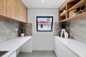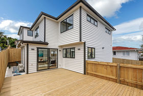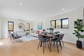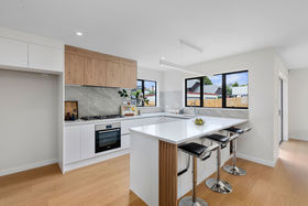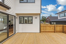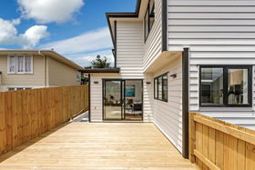 This home offers an open plan living area and kitchen & scullery, with great indoor/outdoor flow to a sunny deck, three double bedrooms, 2.5 bathrooms including a master ensuite, fenced private and flat back garden, with enough parking spaces.