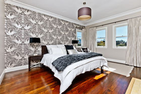 One of the most outstanding features is a gorgeous brand new kitchen with quality appliances and a very large Carrara marble bench-space for casual dining. Glass sliders located on the sunny western aspect expand the indoor outdoor flow to an enormous deck with a glimpse of the harbour, perfect for barbecues on two deck levels stepping down to a raised vegetable garden. Upstairs, the four double bedrooms are light and bright, one with a lovely view out to the harbour and a smaller room is ideal as a nursery. The master bedroom with it's open fire place comes with a walk-in dressing room.