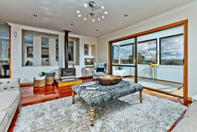 On the upper level, an open plan area incorporates a modern kitchen off the dining space with a wood fire (plus wetback) to ensure relaxing is all the more pleasurable. Polished timber floors set a sophisticated ambiance and the Gulf backdrop is mesmerising.