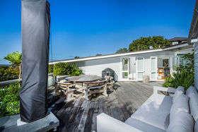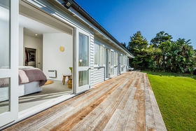 This newly renovated weatherboard bungalow offers exquisite, on-trend interiors and its comprehensive list of features really do optimise the ultimate in family living. Designed to maximise space and light, the split level nature of the property makes living easy. On entry you're immediately welcomed by warm Australian hardwood floors and an exquisite kitchen just recently installed, with a full Gagganau appliances package and luxurious honed marble benches. Two large living areas flank either side of the kitchen, creating excellent separation between formal and informal lounges. A large deck flows from this space and creates an enviable environment for entertaining whilst offering magnificent views and all day sun. On the lower floor you have four bedrooms, which all flow out via French doors to another deck and lovely grass area with room for spa, trampoline and space for the children to play - superb! This garden is filled with mature trees and bird life, which leaves you with the feeling you're a world away from the hustle and bustle of Auckland. The master suite is nicely appointed and has a good size en suite. Also on this floor is a third lounge, currently a children play room which could be a fifth bedroom if required.