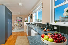 The open plan living/dining and kitchen with original hardwood floors flows to the front veranda and large entertaining sun deck for entertaining all year round.